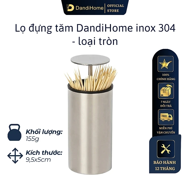 Lọ đựng tăm inox 304 DandiHome nắp bấm đóng mở hoàn toàn kín