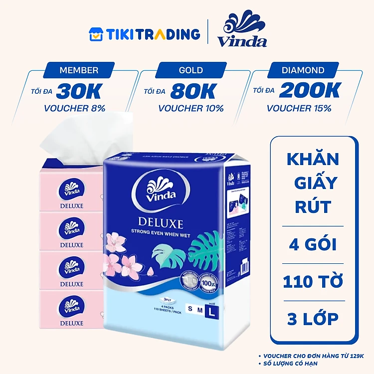Khăn Giấy Rút Cao Cấp Vinda Deluxe 3 Lớp - L - 110 tờ (4 Gói)
