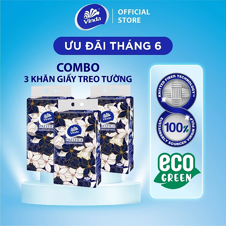 [3 GÓI KHĂN TREO TƯỜNG TẶNG 1 MÓC TREO] Khăn giấy treo tường cao cấp Vinda Prestige 4D 3 lớp 212 tờ