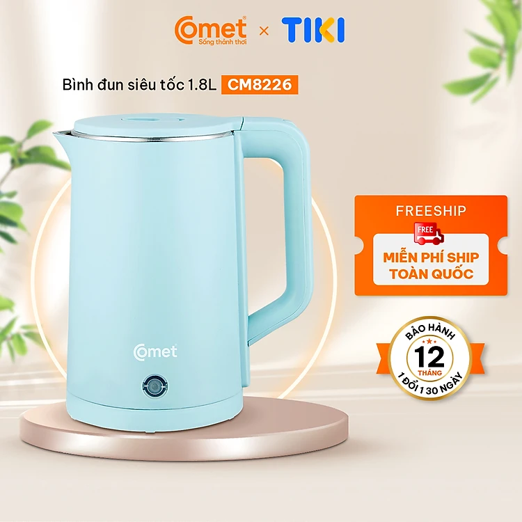 Bình đun siêu tốc 2 lớp Comet CM8226 – Hàng chính hãng - Dung tích 1.8L, công suất 1500W, chống bỏng, tự ngắt an toàn