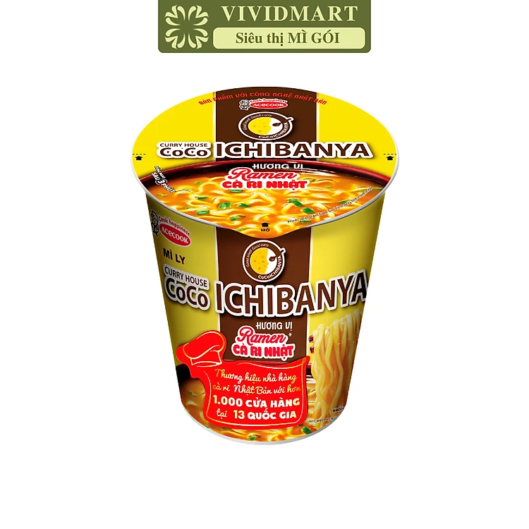 ACECOOK - Mì ly Curry House Coco Ichibanya hương vị Ramen cà ri Nhật, Mì ly Coco Ichibanya ăn liền (63g/ly)