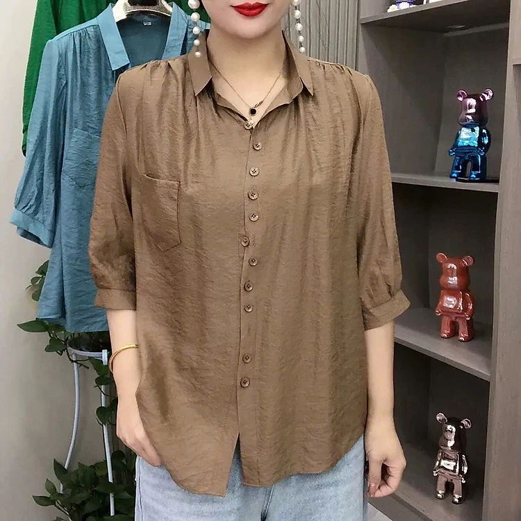 Áo sơ mi kiểu tay lỡ cổ đức, chất liệu Đũi tơ mềm mát, thấm hút mồ hôi, áo kiểu nữ dễ thương, NeSa Shop AT12