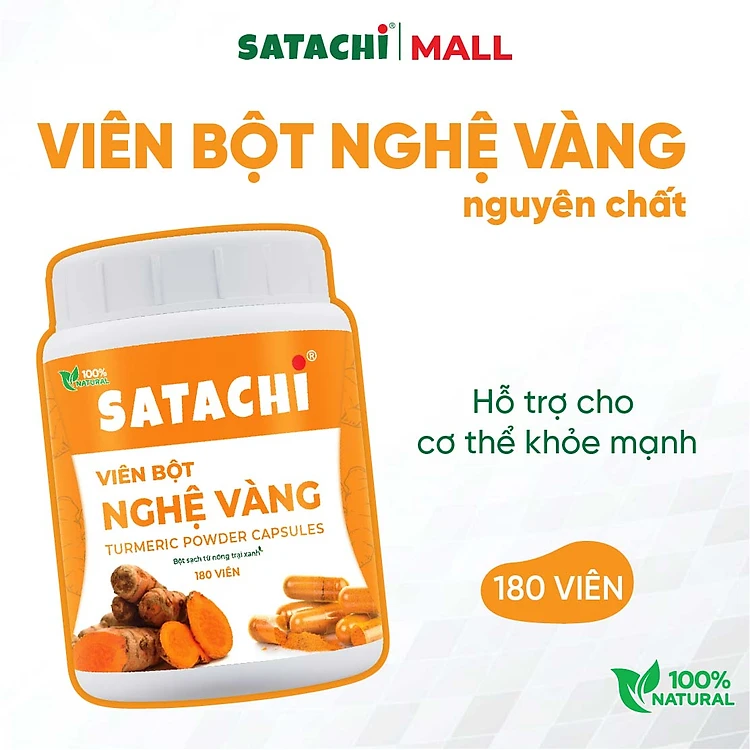 Viên Bột Nghệ Nguyên Chất SATACHI – 100% Nghệ – Dạng Viên Tiện Lợi – Hộp 180 viên