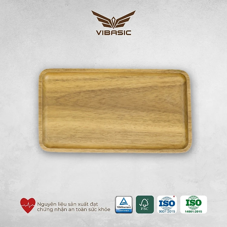 Khay gỗ keo đa năng hình chữ nhật Vibasic, đa dạng kích thước, chụp hình decor đựng đồ trang trí