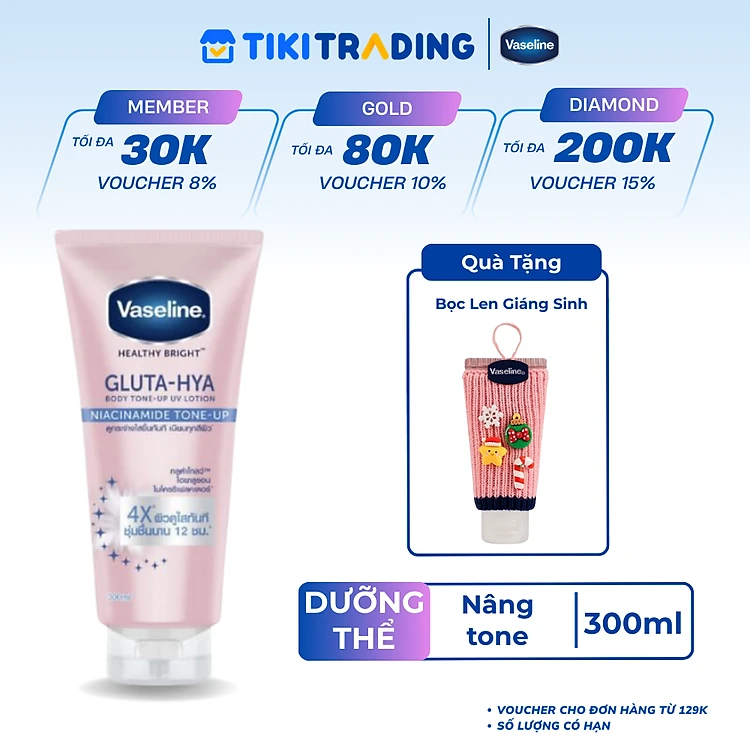 Vaseline Body Tone-Up Sữa dưỡng thể nâng tông tức thì 300ML - Sáng Mịn Da Nâng Tone