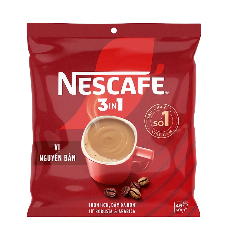NESCAFÉ 3IN1 VỊ NGUYÊN BẢN - Vị cà phê quốc dân quen thuộc, hài hòa, cân bằng giữa vị sữa và vị cà phê. Nay thêm hương thơm nồng đặc trưng đến từ hạt Arabica, cho ly cà phê- thêm đậm hương, trọn vị, cho khoảnh khắc tận hưởng thêm đong đầy