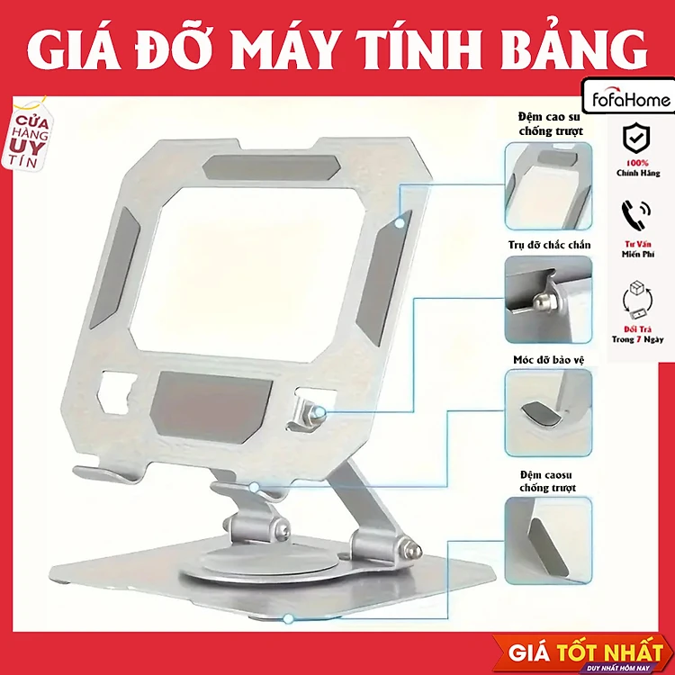 - Giá Đỡ Máy Tính Bảng xoay 360 độ sẽ là một trợ thủ đắc lực cho việc sử dụng máy tính bảng của bạn.