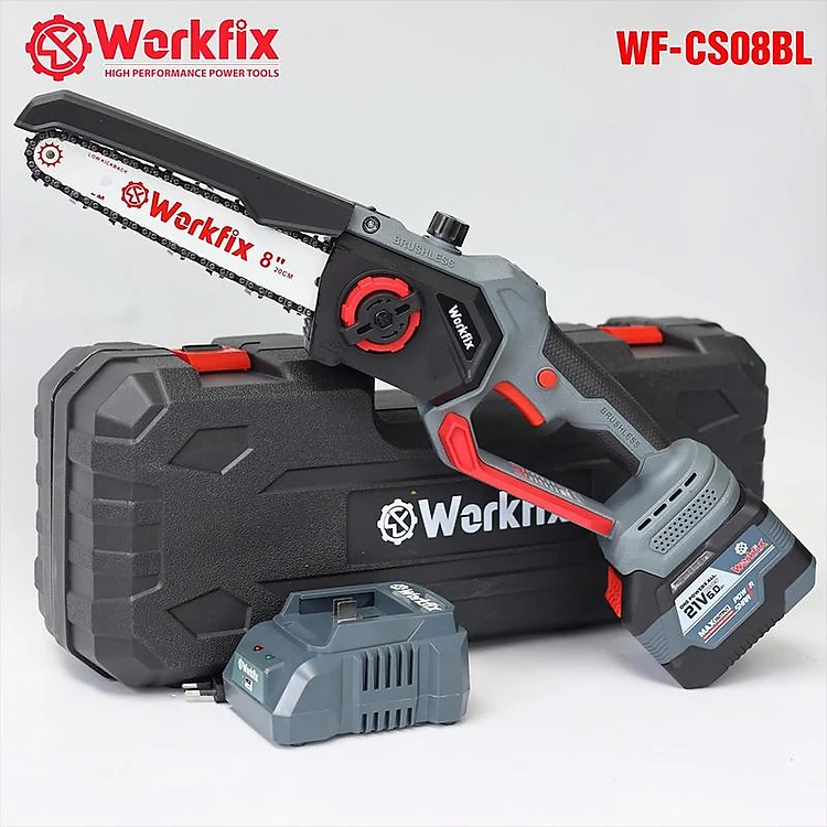 Máy Cưa Pin 8 Inch Workfix Cầm Tay - WF-CS08BL - Tốc Độ Cưa 4m/s - Không Chổi Than Cao Cấp - Có Tự Động Tra Nhớt - Chân Pin Phổ Thông Pin 15 Cell 21V/6Ah