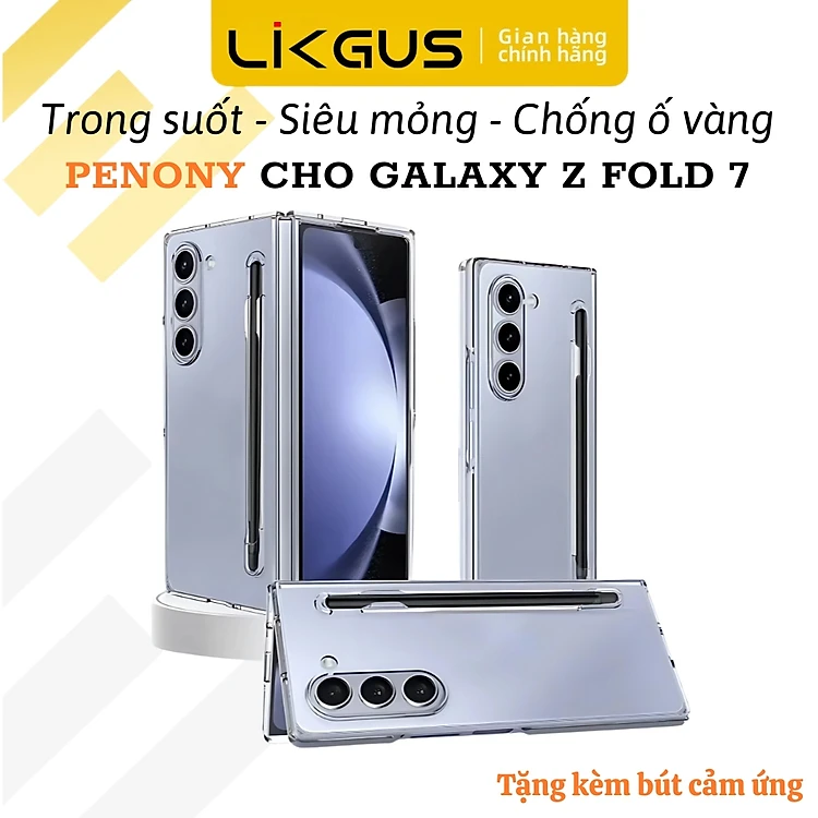 Ốp lưng trong suốt siêu mỏng chống ố vàng cho Samsung Galaxy Z Fold 7 5G Likgus Penone bảo vệ 360 độ màn phụ và mặt lưng (Tặng bút cảm ứng) - Hàng nhập khẩu