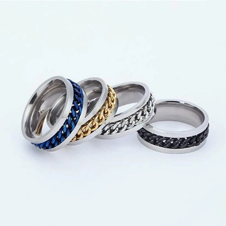 Nhẫn inox phối xích xoay nam nữ nhiều màu cao cấp thời trang thép không gỉ trangsucpt khui bia