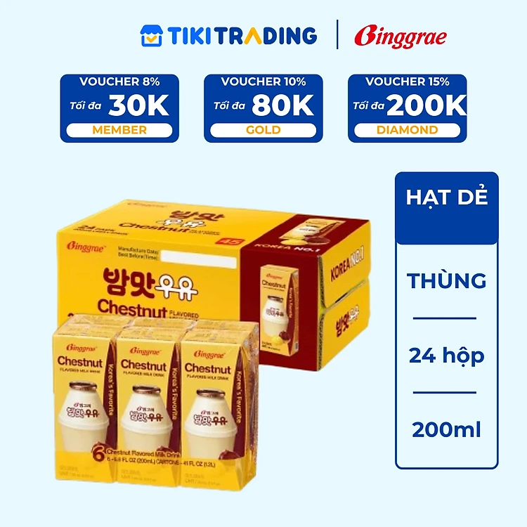Thùng 24 hộp Sữa hạt dẻ 200ml nhãn hiệu Binggrae