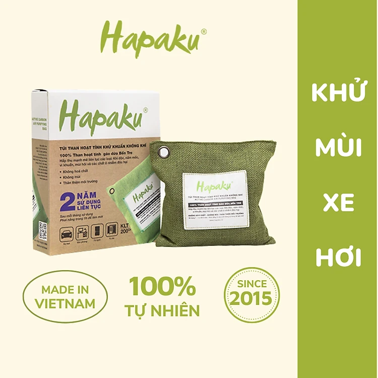 Túi than hoạt tính khử mùi xe hơi Hapaku - 100% từ gáo dừa Bến Tre