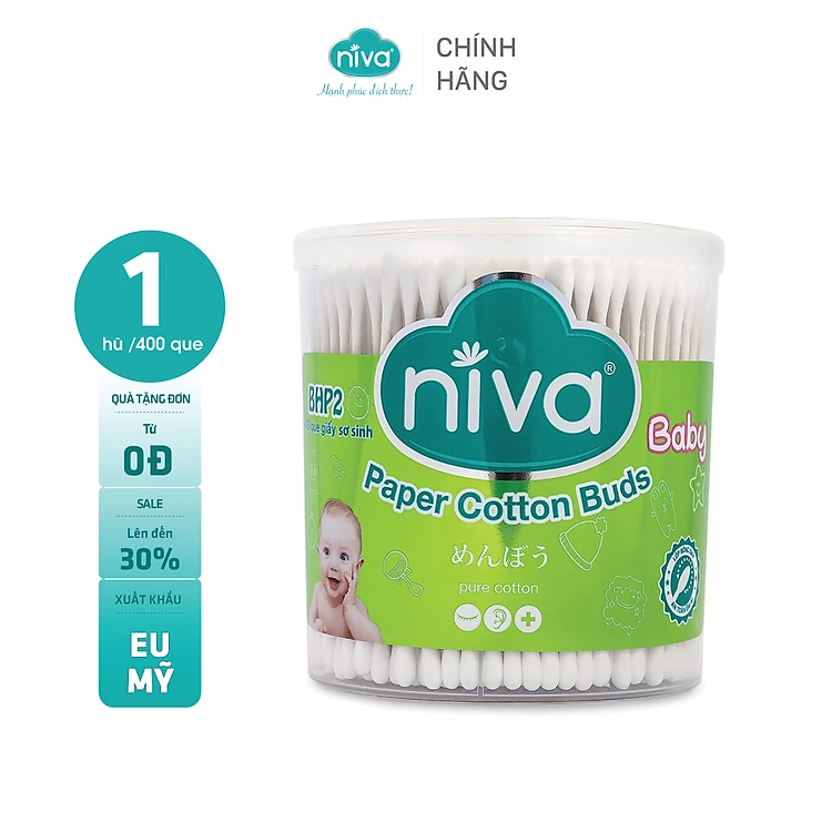 Tăm bông Niva trẻ em hũ xoay 400 que giấy BHP2