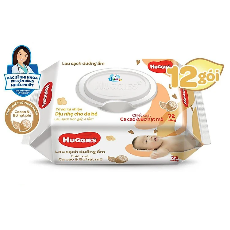 Combo 12 gói Khăn giấy ướt cho trẻ sơ sinh HUGGIES (Gói 72 tờ) - Chiết xuất Cao cao & Bơ hạt mỡ