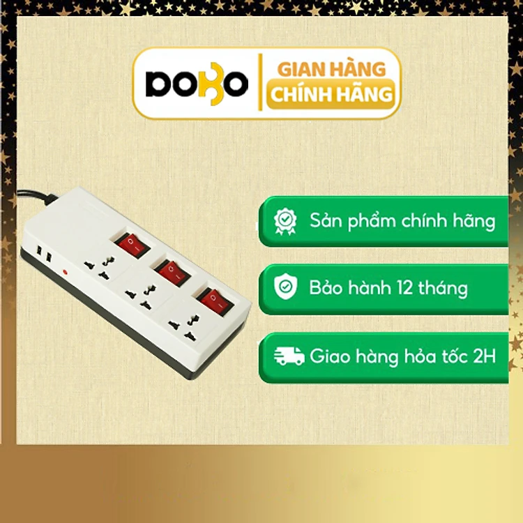 Ổ Cắm Dài 6 Lỗ Kèm Cổng USB Dobo Electric Korea (16A - 3m) - Trắng
