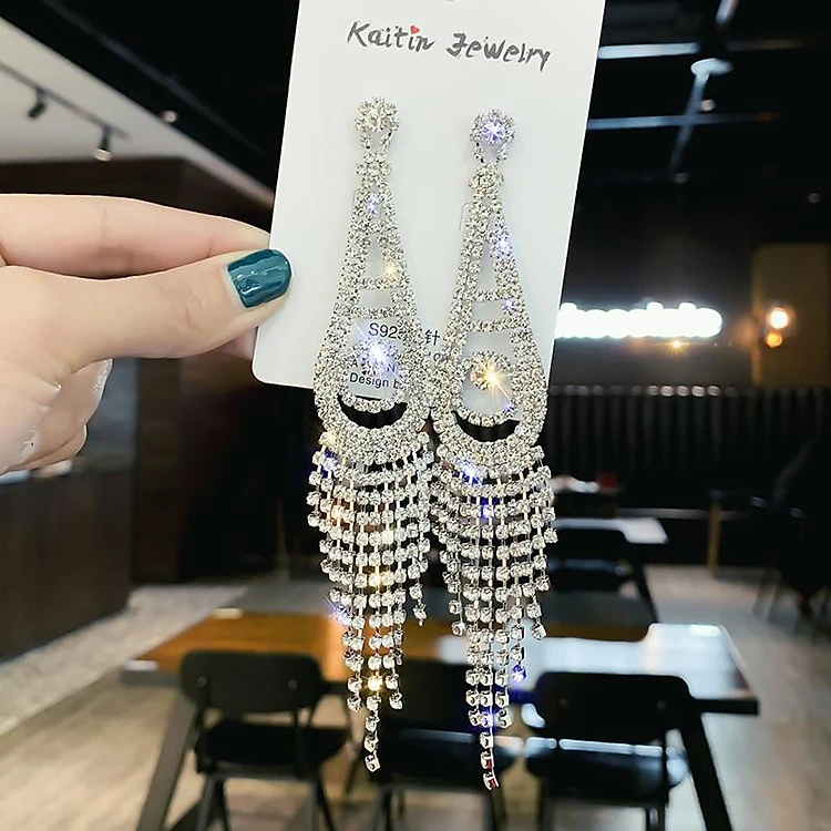 Bông tai đá dáng dài mắt phượng ấn tượng