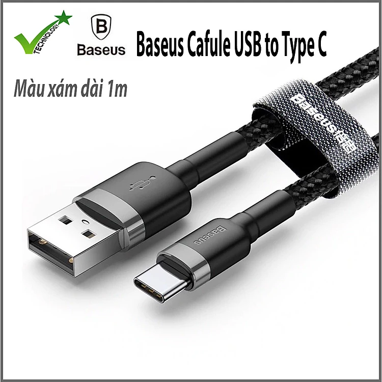 Cáp sạc nhanh, truyền dữ liệu tốc độ cao Baseus Cafule Type C cho Samsung S8/S9/ Note8/ Note9/ Xiaomi/ Huawei/ Oppo/Nokia ( 3A, Sạc nhanh Quick charge 3.0, Siêu bền)- Hàng nhập khẩu