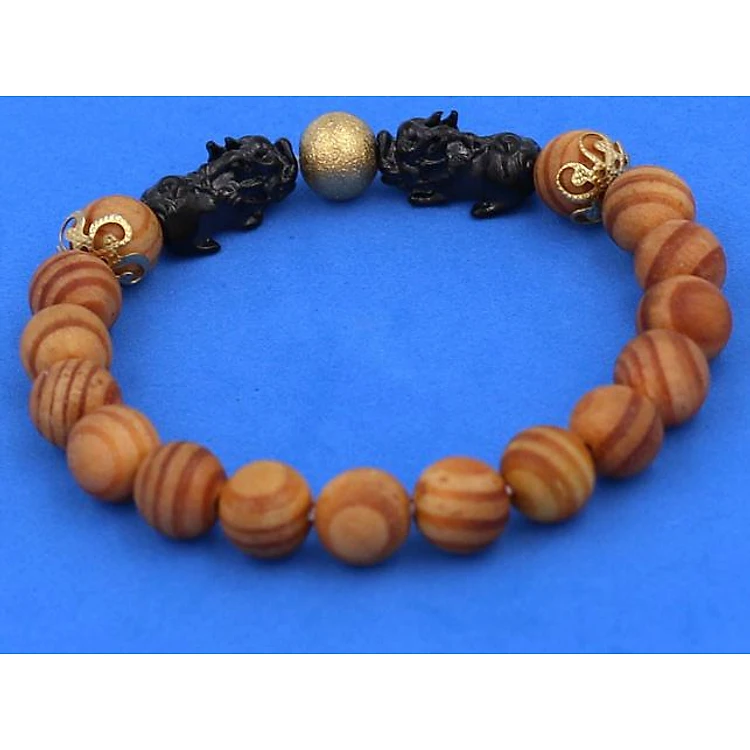 Vòng tay chuỗi hạt Gỗ Huyết Rồng - Vòng tay Tỳ Hưu Đôi inox đen VGHRTHHEV