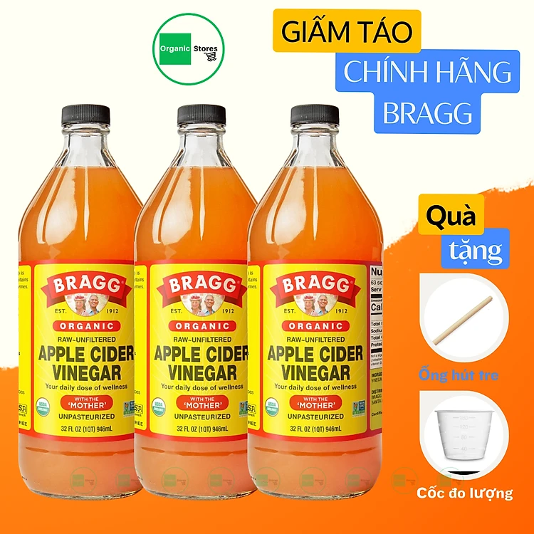 Giấm táo hữu cơ Organic Bragg 946ml (3 chai)