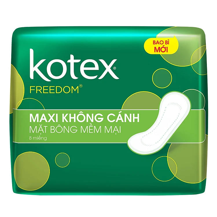 Băng Vệ Sinh Kotex Freedom Bông Mềm Mại - Maxi Không Cánh 8 với bề mặt bông mềm mại, an toàn cho mọi loại da. Đồng thời, sản phẩm có vùng thấm an toàn và rãnh bảo vệ khép kín, cho bạn luôn tự tin và thoải mái trong những ngày ấy.