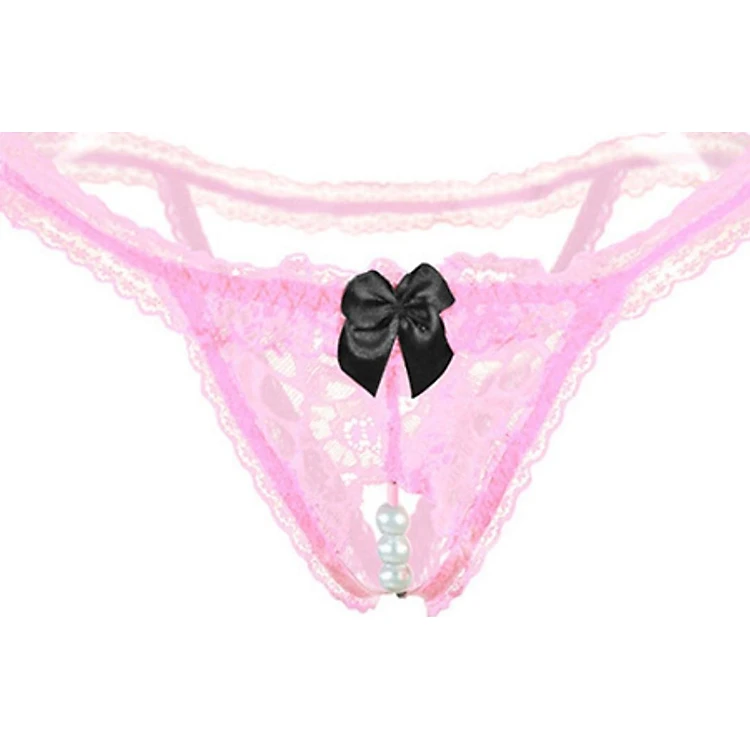Quần lót nữ ren lọt khe đính nơ quyễn rũ - Hồng
