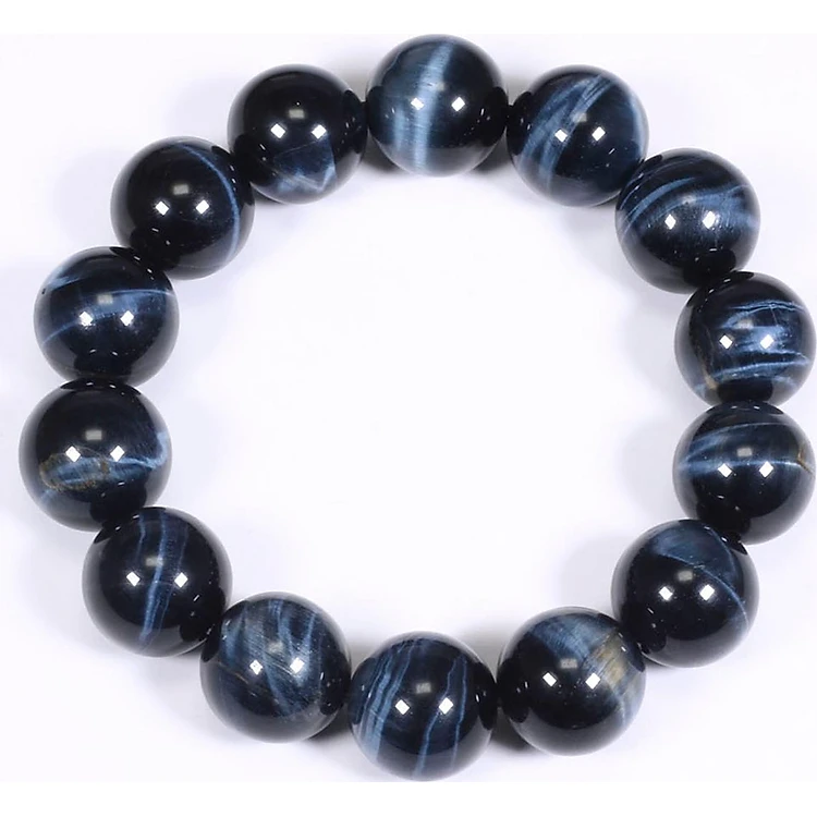 Vòng tay nam đá thạch anh mắt ưng xanh đen AAA hạt đá 14mm mệnh thủy, mộc - Ngọc Quý Gemstones