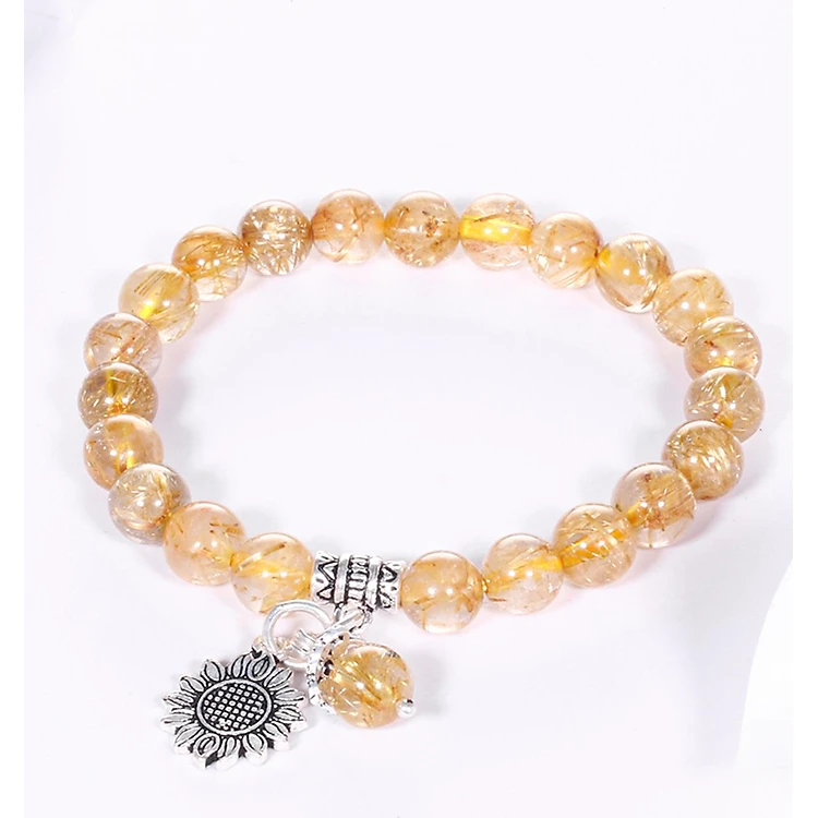 Vòng tay thạch anh tóc vàng mix hoa hướng dương bạc hạt đá 7mm mệnh thủy, kim - Ngọc Quý gemstones