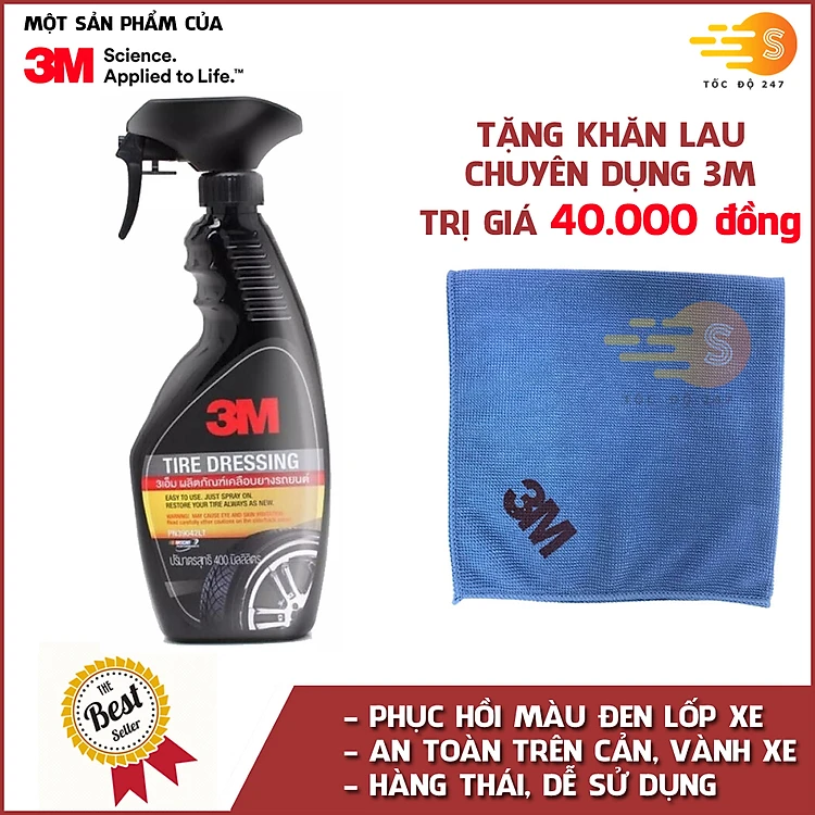 Chai xịt bảo dưỡng lốp ô tô 3M 39042LT tăng khăn lau ô tô chuyên dụng 3M màu ngẫu nhiên