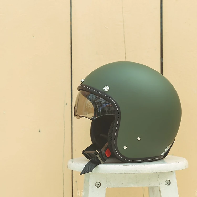 Mũ nón bảo hiểm nam nữ 3/4 có kính Sunda 388 cao cấp màu xanh lính nhám