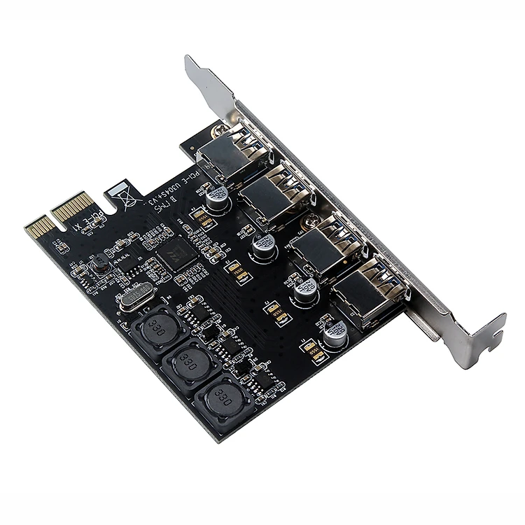 Four Ports USB 3.0 Super Fast 5Gbps PCI-E Expansion Card PCI Express Adapter Converter Card 6A Power Supply Module For - Black
