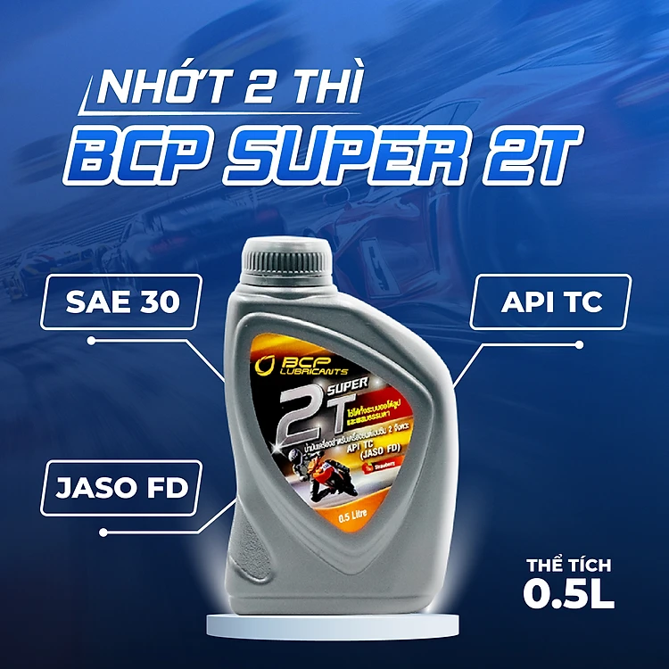 Nhớt xe 2 thì Giảm Khói Trắng Thái Lan chất lượng cao BCP SUPER 2T – TC/FD – 0.5 Lít