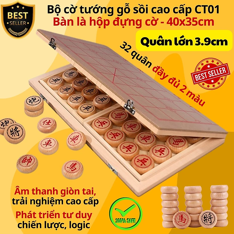 Bộ Cờ Tướng Gỗ + Bàn Cờ Tướng 40*35cm, Cờ Tướng Gỗ Có Bàn Là Hộp Đựng Chính Hãng
