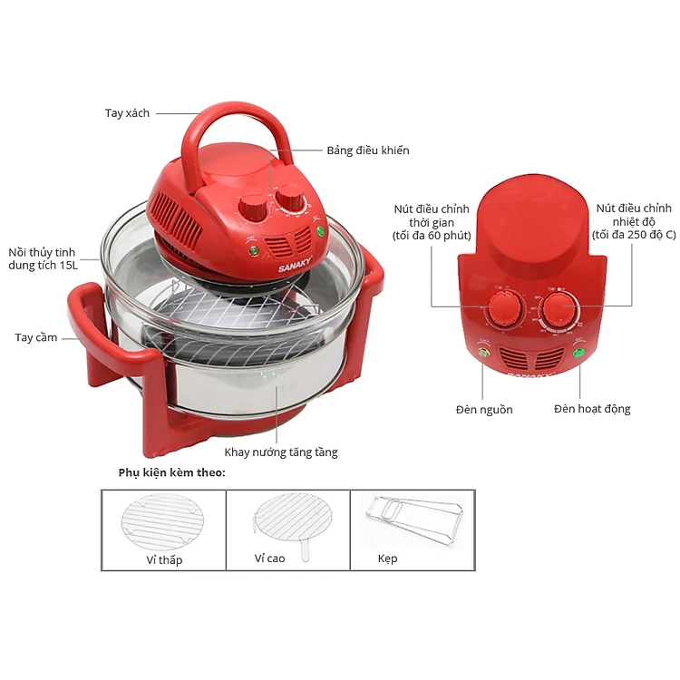Lò Nướng Thủy Tinh Sanaky VH-188D - Hàng chính hãng