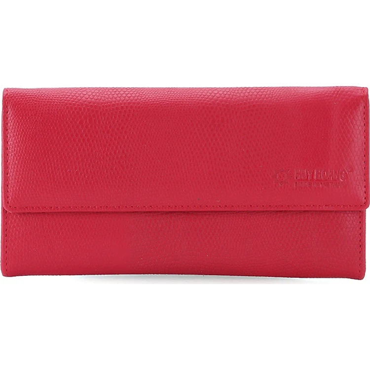 Ví nữ da bò cao cấp Huy Hoàng 3 gấp lửng màu đỏ đô HT3167