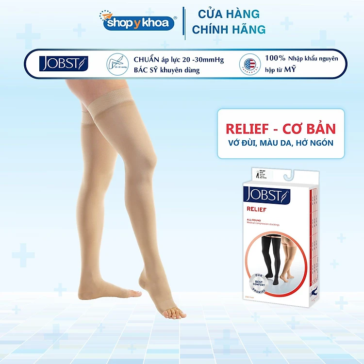 Vớ y khoa đùi Hỗ Trợ Điều Trị suy giãn tĩnh mạch chân JOBST Relief chuẩn áp lực 20-30mmHg - Da (tất y khoa)