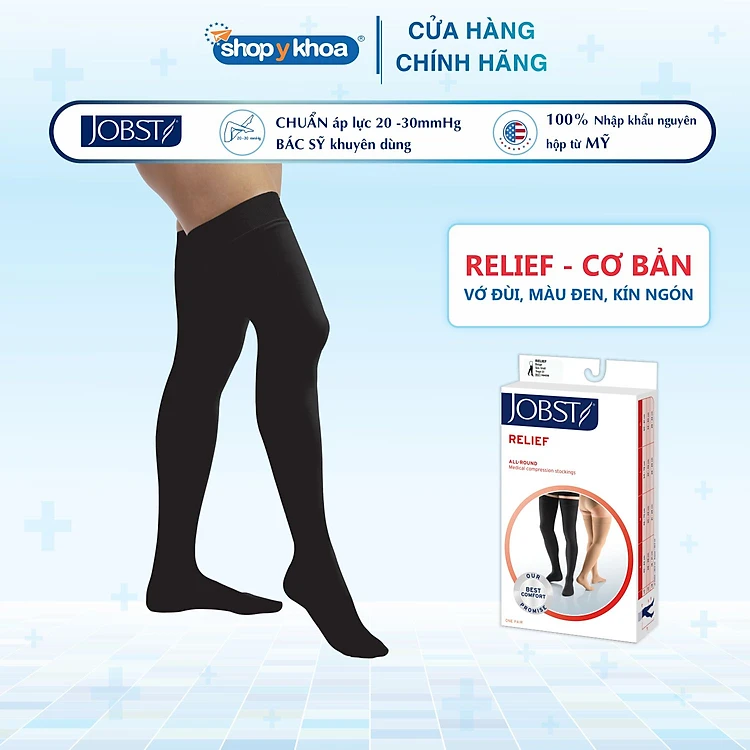Vớ Y Khoa JOBST Relief - Vớ Đùi, Màu Đen, Kín Ngón, Dòng Cơ Bản, Áp Lực 20-30mmHg, 2 Chiếc (Tất Y Khoa)