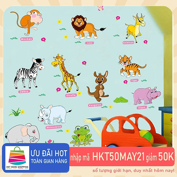 Decal dán tường dán kính Các con vật bằng tiếng anh cho bé AM9215