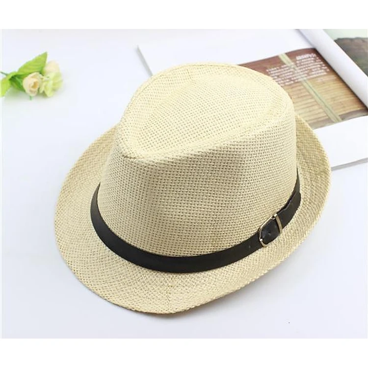 Mũ phớt nam thời trang Mũ nón phớt cói đa da cho nam màu kem