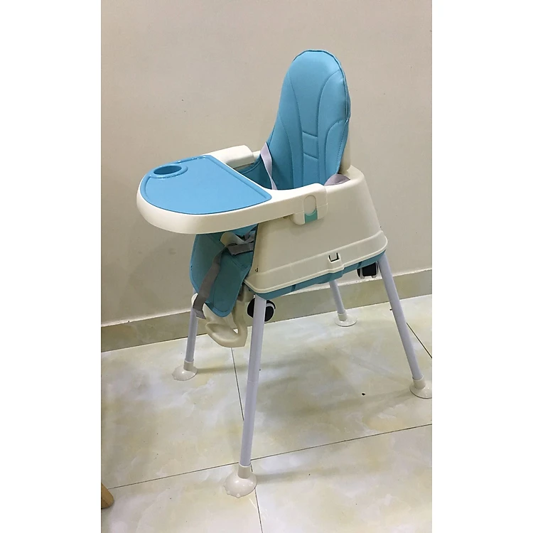 Ghế ăn dặm gấp gọn có đệm và bánh xe, Màu Xanh Bé trai tặng 1 thìa ăn và 1 gói khăn sữa cao cấp