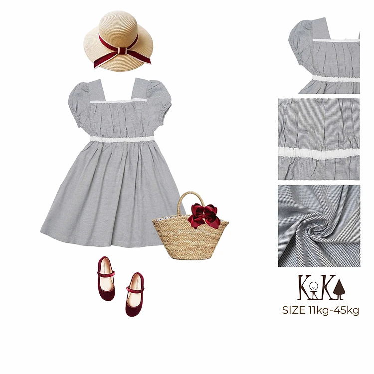 Đầm Bé Gái Kika Màu Trắng Chấm Đen Viền Ngực Trắng K104