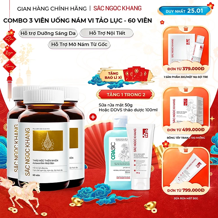 Combo 3 Hộp Sắc Ngọc Khang Vi tảo lục làm mờ sạm nám hiệu quả