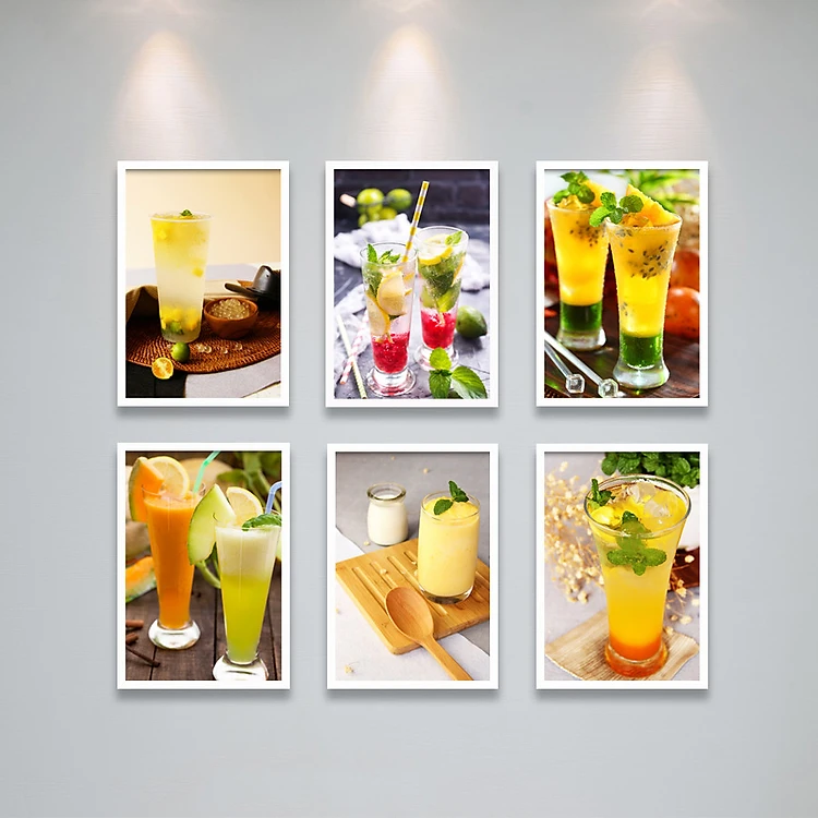 Tranh Bộ Treo Tường Trang Trí Quán Cafe, Nước Ép Sinh Tố, Đá Xay Cực Đẹp Tặng Kèm bộ ảnh như hình mẫu, đinh treo tranh và sơ đồ treo PGC302