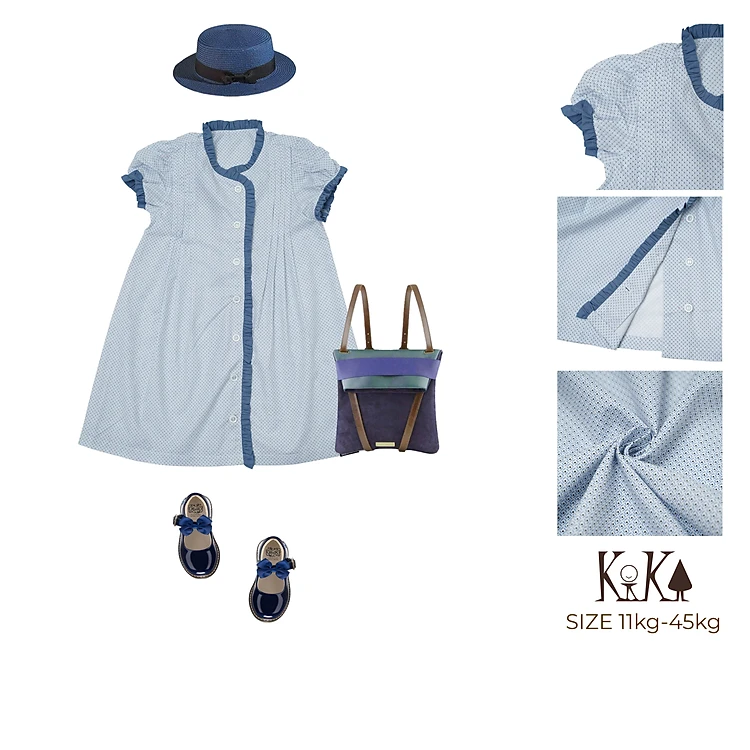 Đầm Bé Gái KIKA Hoa Nhí Bèo Xanh Ve Áo K119