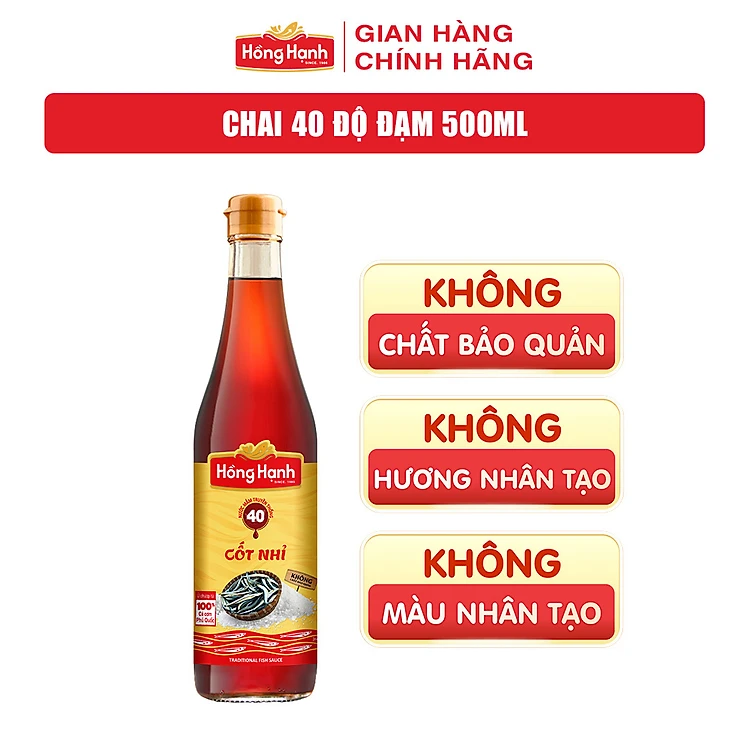 Nước mắm truyền thống Phú Quốc Hồng Hạnh Cốt Nhỉ 40 độ đạm dung tích 500ML - Chấm sống tuyệt ngon, vẹn tròn dưỡng chất