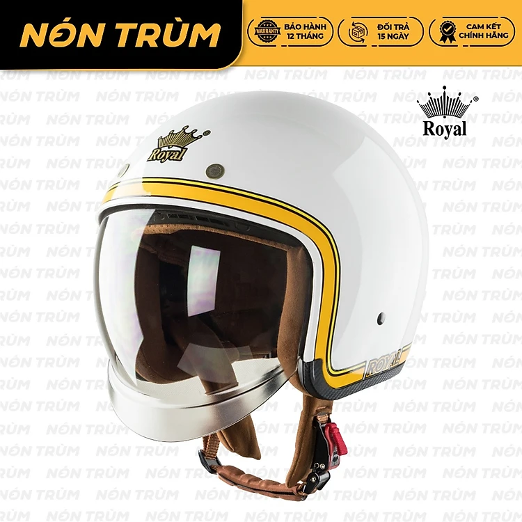 Nón bảo hiểm Royal M139 kính âm V10 trắng line vàng