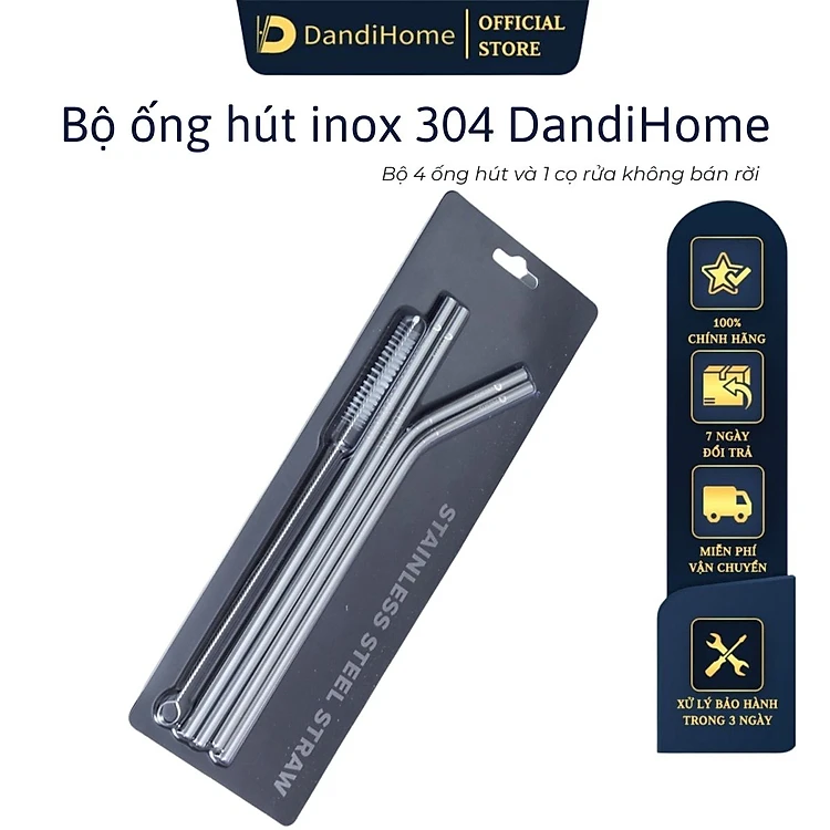 Bộ 4 ống hút Inox 304 kèm cọ rửa DandiHome