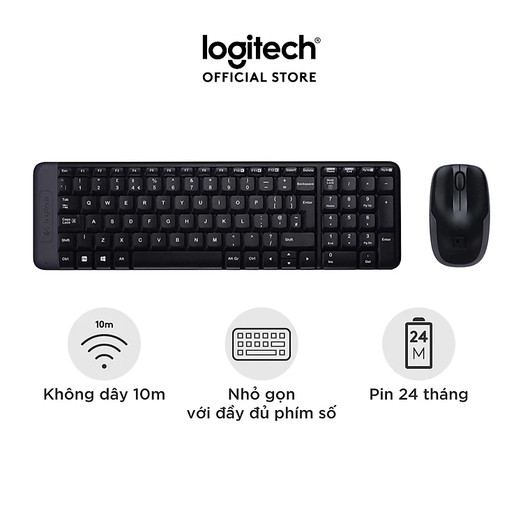 Combo chuột phím không dây Logitech MK215 - nhỏ gọn với đủ phím số, 1 đầu thu USB, không dây 10m, pin 2 năm - Hàng chính hãng