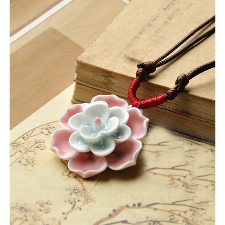 Vòng cổ gốm Vintage hoa 3D thời trang VGOM35