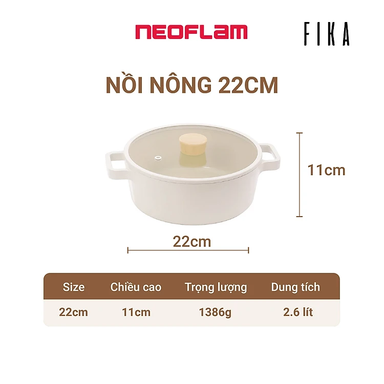 [Hàng chính hãng] Nồi nông cao cấp chống dính bếp từ Neoflam Fika 22 cm. Made in Korea. Hàng có sẵn, giao ngay