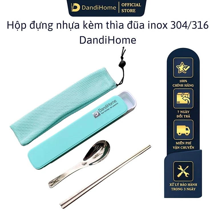 Bộ thìa (muỗng) đũa cơm trưa văn phòng inox 304 DandiHome cao cấp, tiện lợi, vệ sinh